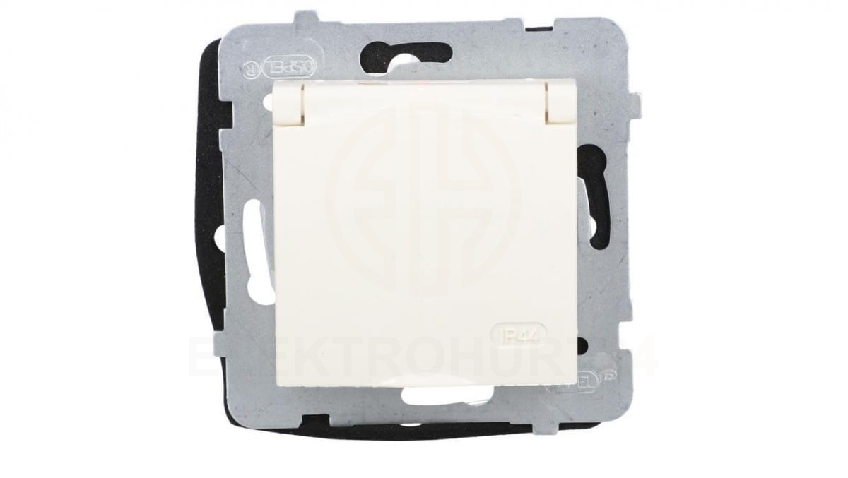 ARIA Gniazdo bryzgoszczelne z/u IP44 wieczko kolor ecru GPH-1UZ/m/27/w
