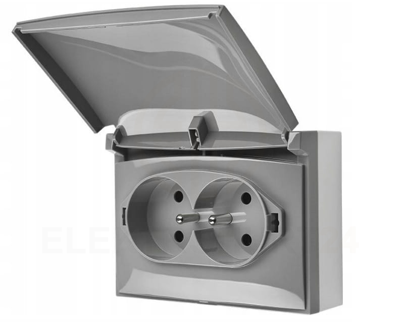 Aquaclick gniazdo natynkowe podwójne IP44 szary