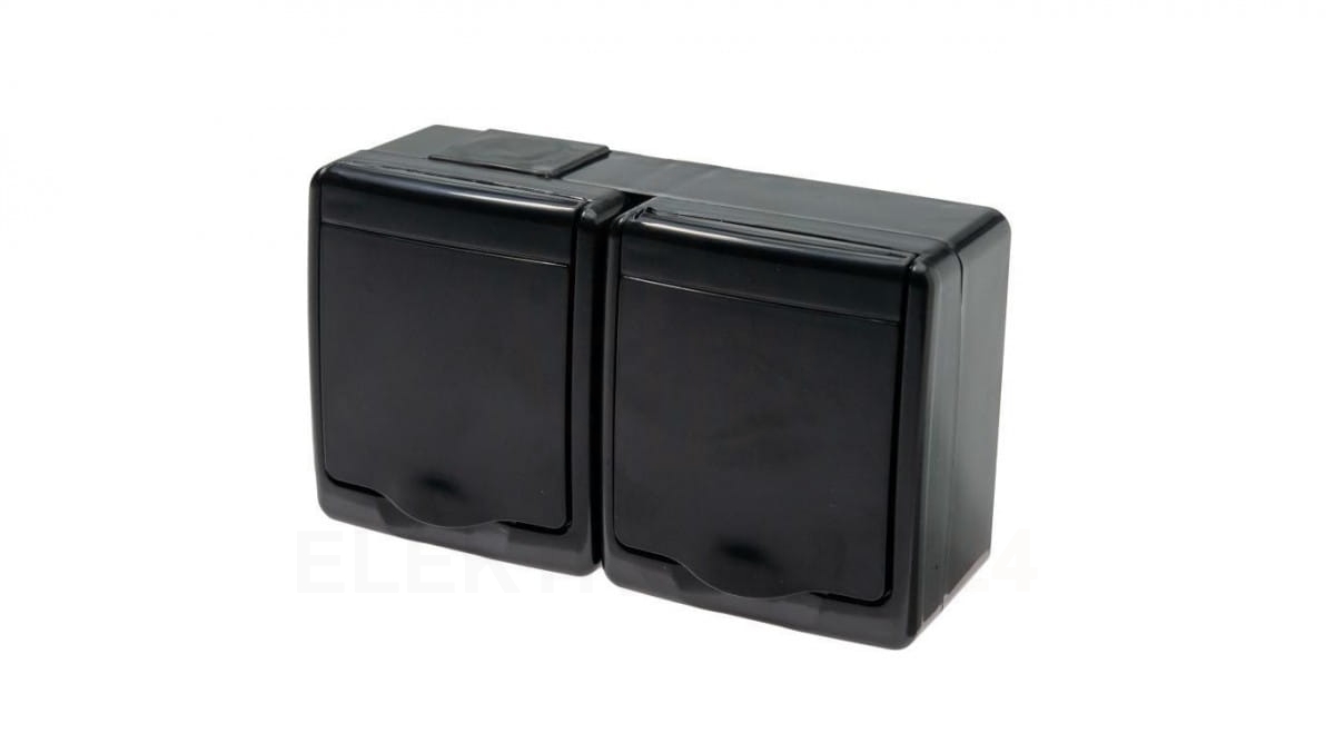 BETA Gniazdo hermetyczne podwójne, czarne, czarna klapka, IP44 /D.3712CGG/1/