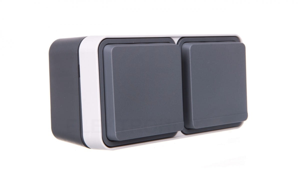 Berker W.1 Gniazdo podwójne poziome z/u kompletne 2 wejścia IP55 szary 6768823525