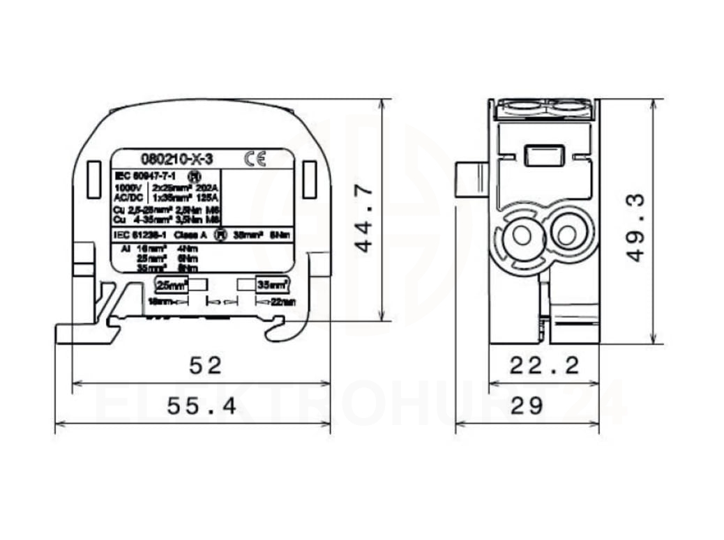 Blok rozdzielczy 1-potencjałowy łączony 125A 2x4-3