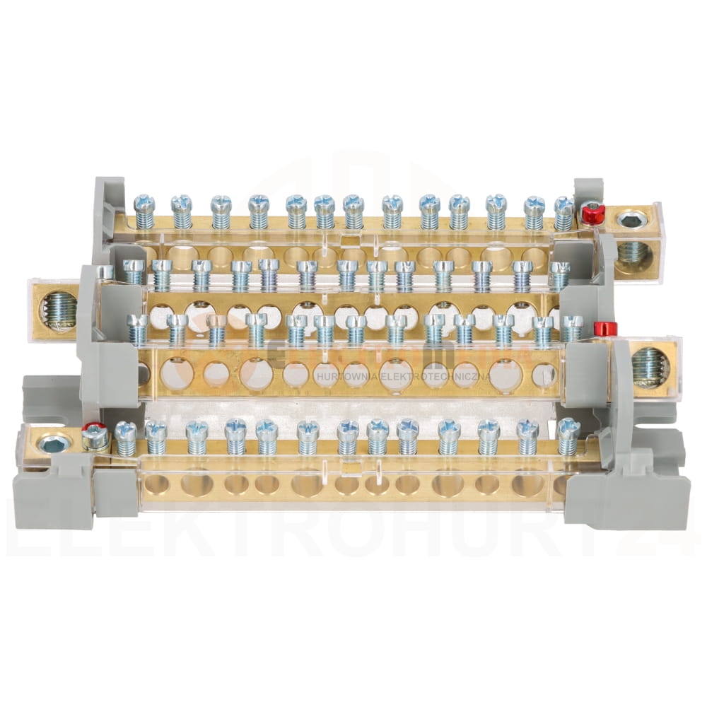 Bloki zacisków są umieszczone na izolowanych wspornikach i przykryte przezroczystą plastikową osłoną, którą można łatwo zdjąć. Bloki zacisków są przykryte plastikową osłoną również od dołu, a między każdą szyną zbiorczą znajduje się bariera izolacyjna.