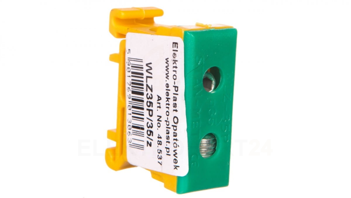 Blok rozdzielczy-odgałęźny 1-polowy AL/CU 2,5-35mm2 żółto-zielony montaż płaski i na szynę TH WLZ35P/35/z 48.537
