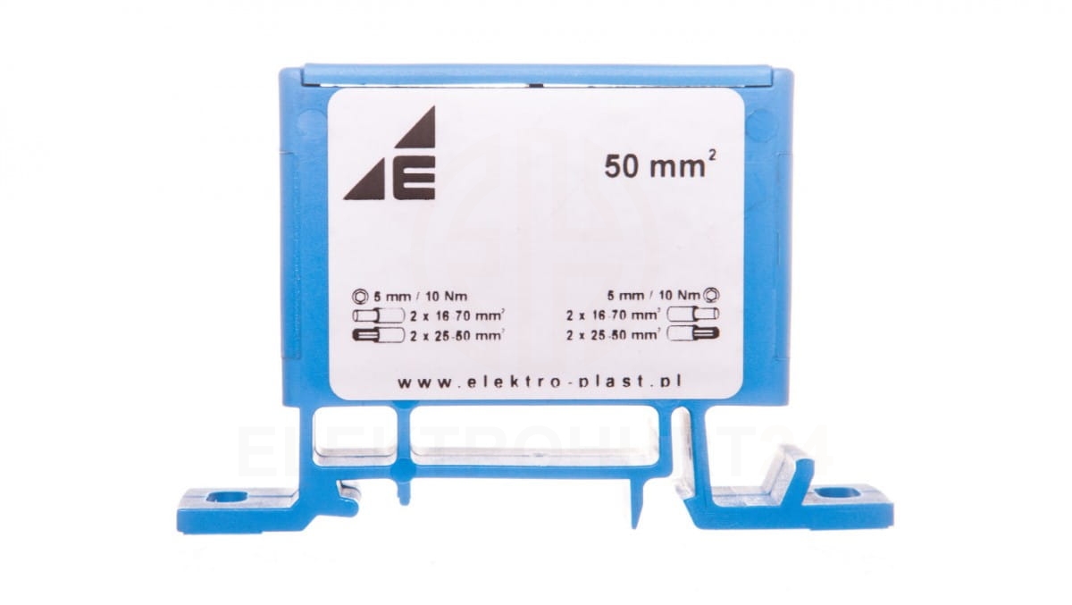 Blok rozdzielczy-odgałęźny 1-polowy CU 16-50mm2 niebieski montaż płaski i na szynę TH ZP50 Cu / n 48.51