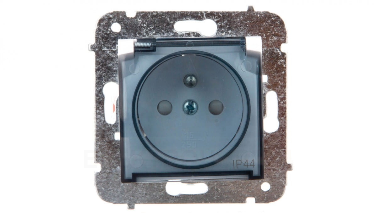 CARLA Gniazdo pojedyncze z/u IP44 z klapką transparentną i przesłonami białe 1766-10