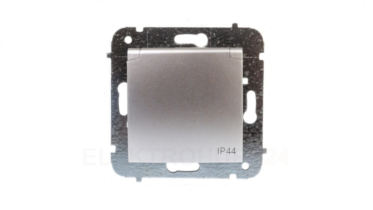 CARLA Gniazdo pojedyncze z/u IP44 z klapką z przesłonami srebrne 1736-16