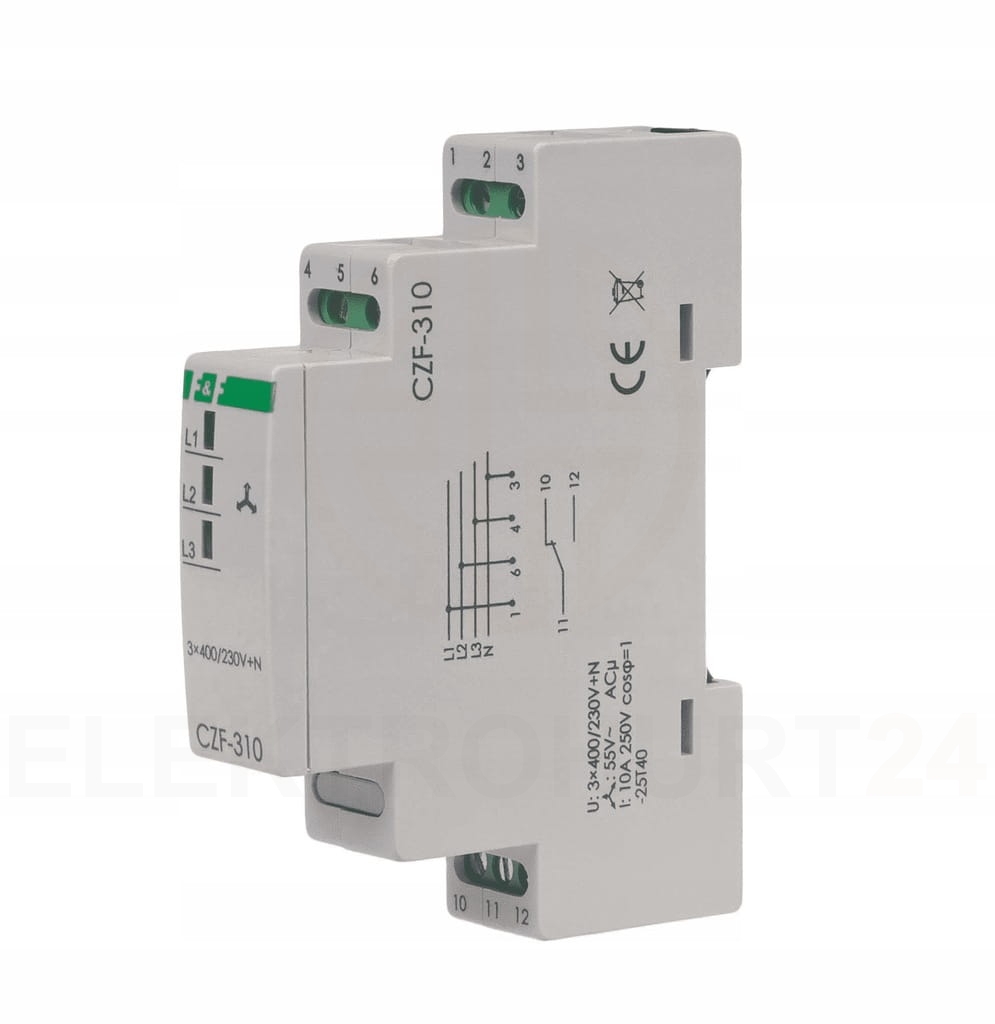 ☀️Czujnik zaniku i asymetrii faz 400V TS-35 F&F to urządzenie służące do monitorowania parametrów zasilania trójfazowego, zapewniające ochronę przed zanikiem fazy oraz asymetrią napięć w systemach zasilających urządzenia elektryczne i przemysłowe. Dzięki wbudowanej funkcji monitorowania, czujnik wykrywa wszelkie nieprawidłowości w pracy sieci zasilającej, co umożliwia szybkie reagowanie na awarie i zapobiega uszkodzeniu podłączonych urządzeń.
