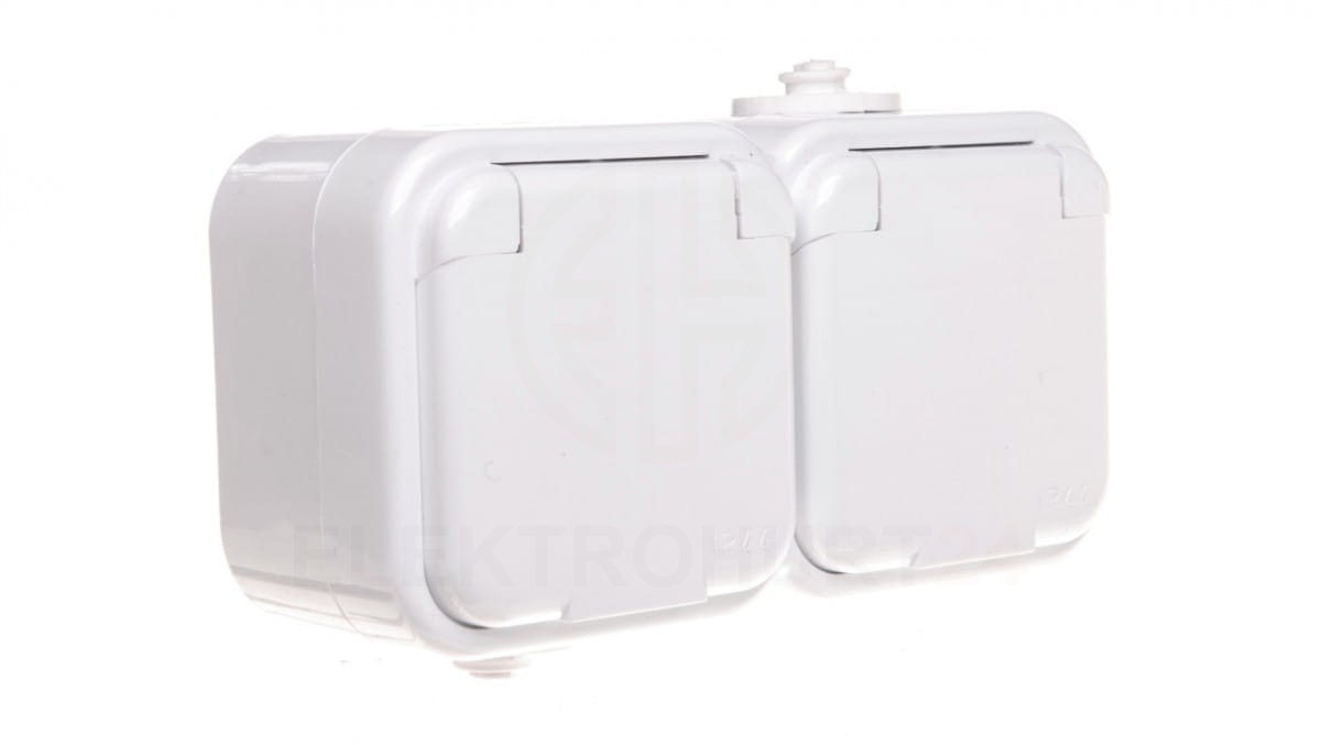 DELFINA Gniazdo hermetyczne podwójne z/u IP44 klapka biała GNH-2DZ/00/w
