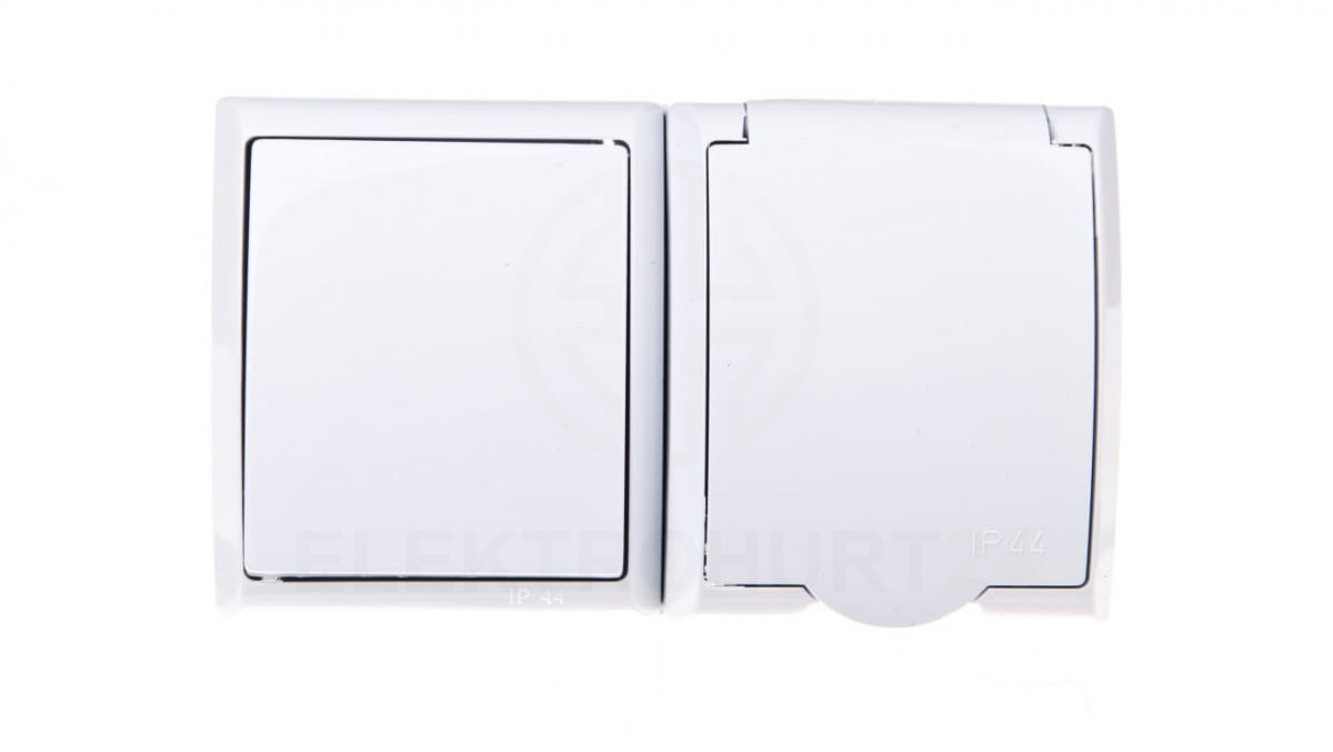 FALA Łącznik hermetyczny pojedynczy + gniazdo z/u z klapką białe ZH-Ł1G/00/w