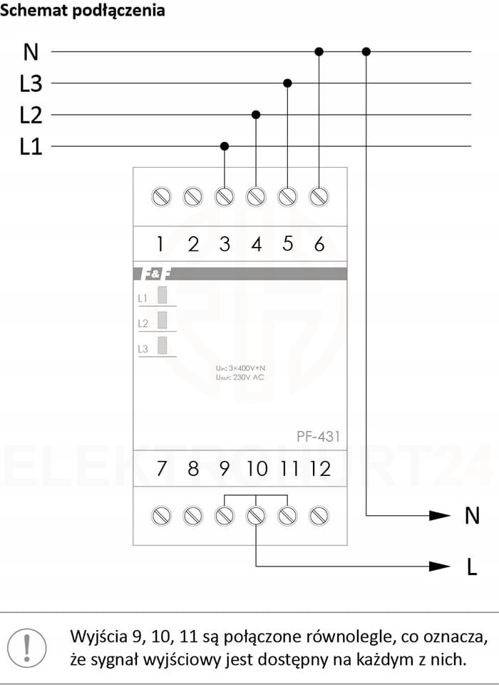 - Minimalna wartość napięcia L1, L2, L3: 190 V