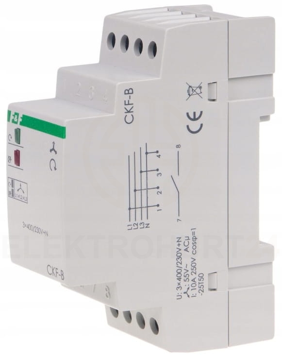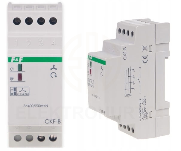 F&F czujnik kolejności i zaniku faz CKF-B to zaawansowane urządzenie elektryczne, które monitoruje i kontroluje kolejność faz oraz wykrywa zaniki faz w sieci elektrycznej.