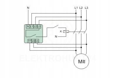 Zanik napięcia w co najmniej jednej, dowolnej fazie lub asymetria napięciowa między fazami powyżej progu zadziałania spowoduje wyłączenie silnika. Wyłączenie nastąpi z opóźnieniem 4 s, co zapobiega odłączeniu silnika przy chwilowym spadku napięcia. Ponowne załączenie nastąpi automatycznie przy wzroście napięcia o 5 V powyżej napięcia zadziałania (tj. o wartość histerezy napięciowej). Awaria któregokolwiek ze styków stycznika załączającego silnik spowoduje wyłączenie silnika na stałe. Ponowne uruchomienie możliwe jest dopiero po całkowitym odłączeniu zasilania, usunięciu usterki stycznika i ponownym załączeniu.