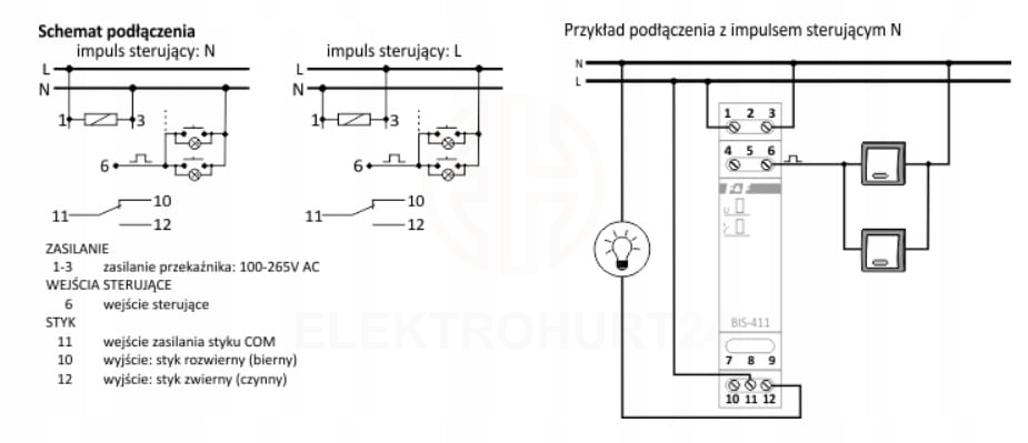 Załączenie odbiornika następuje po impulsie prądu spowodowanym naciśnięciem dowolnego przycisku chwilowego (dzwonkowego) podłączonego do przekaźnika. Wyłączenie odbiornika nastąpi po następnym impulsie lub po zaniku zasilania.