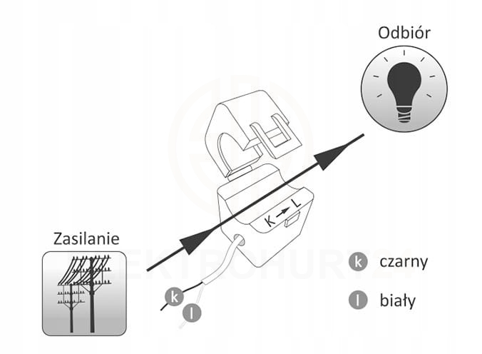 W zestawie z urządzeniem znajdują się miniaturowe, otwierane przekładniki prądowe. By je zapiąć na mierzonych przewodach nie jest wymagana ingerencja w przewody prądowe. Należy jednak zwrócić szczególną uwagę na sposób przełożenia przewodu przez przekładnik oraz podłączenie wtórnej strony przekładnika do urządzenia.