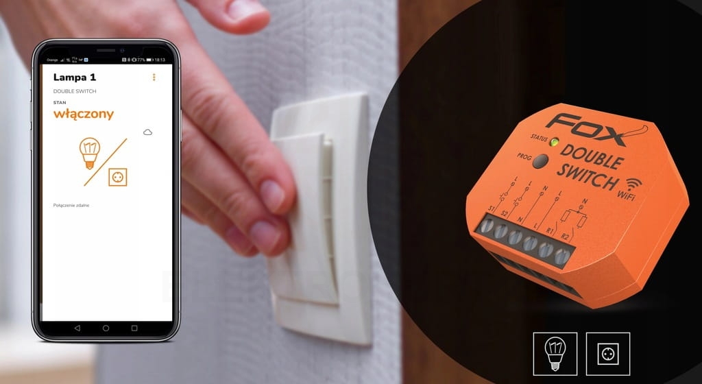 FOX PODWÓJNY PRZEKAŹNIK Wi-Fi DOPUSZKOWY 230V