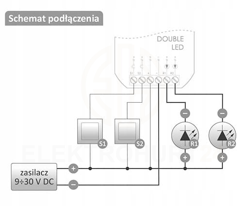 ✅Możliwość podłączenia przycisku lokalnego dla każdego z kanałów do włączania/wyłączania światła (krótkie naciśnięcie) oraz regulacji jasności (długie naciśnięcie);