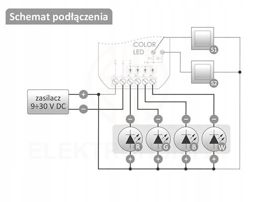 ✅Sterownik LED WiFi do kolorowego (RGBW) oświetlenia LED 12/24 V o obciążalności 4 A na kolor,