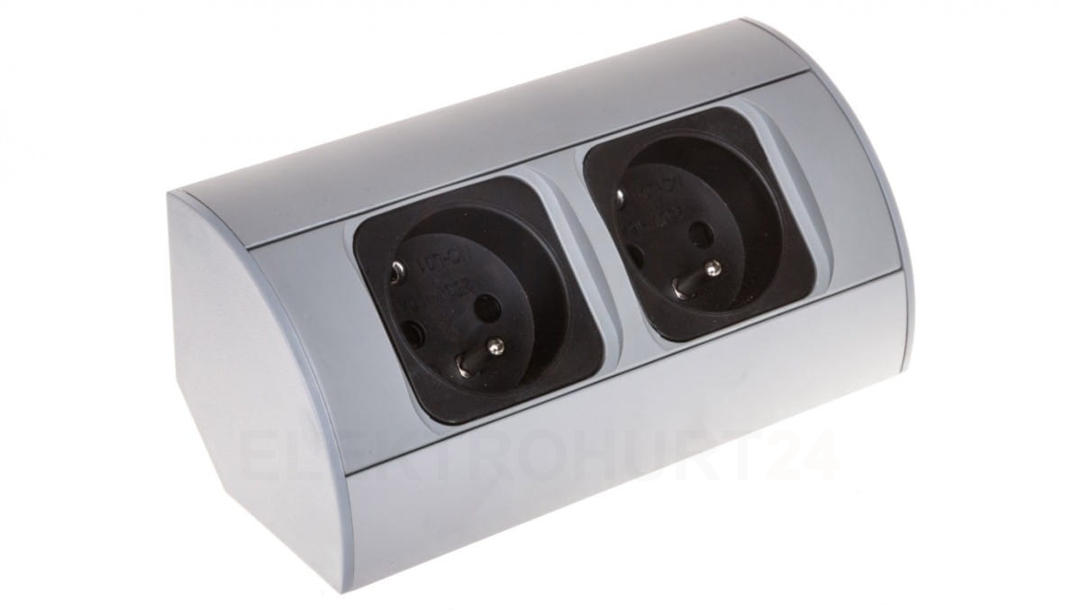 Gniazdo meblowe podwójne z/u 16A IP20 aluminium/ tworzywo, OR-AE-1303/G