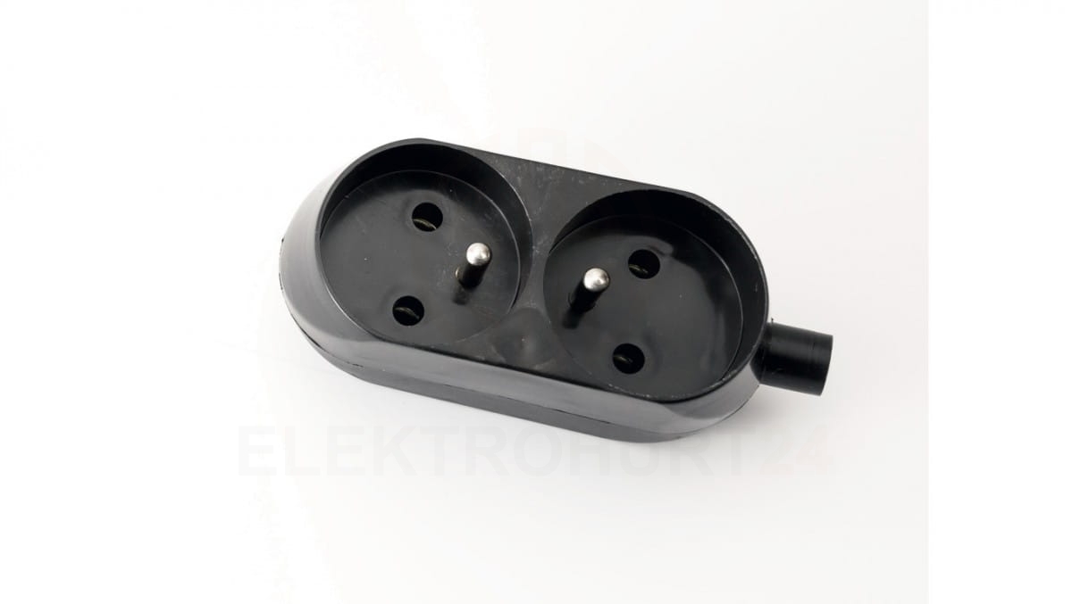Gniazdo przenośne dwukrotne 16A 2P+Z 250V czarne GN-270