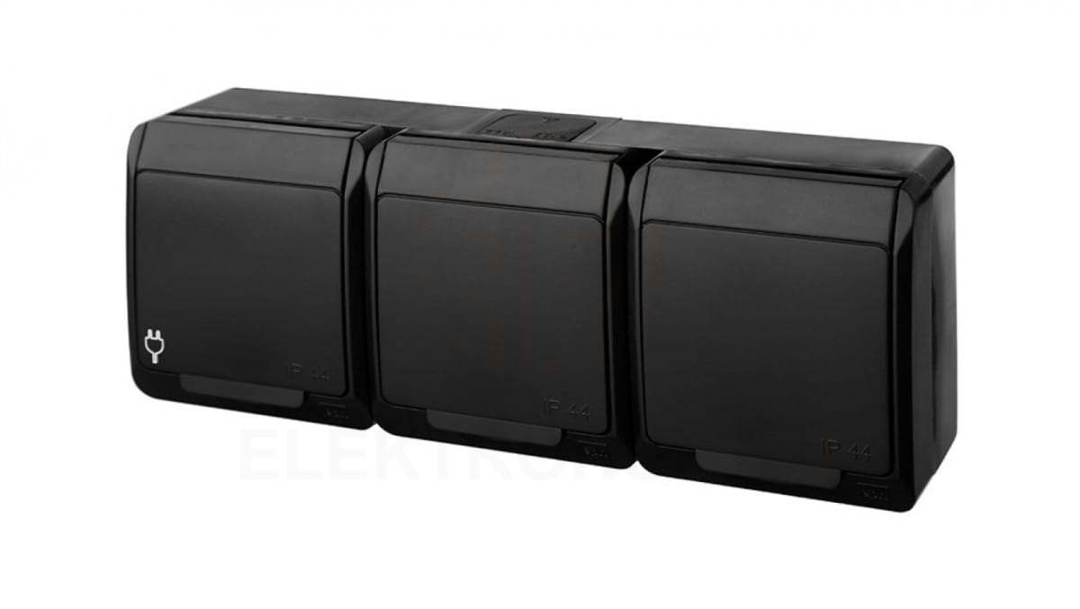 HERMES Gniazdo natynkowe potrójne z uziemieniem 3x2P+Z IP44 czarne 0323-09