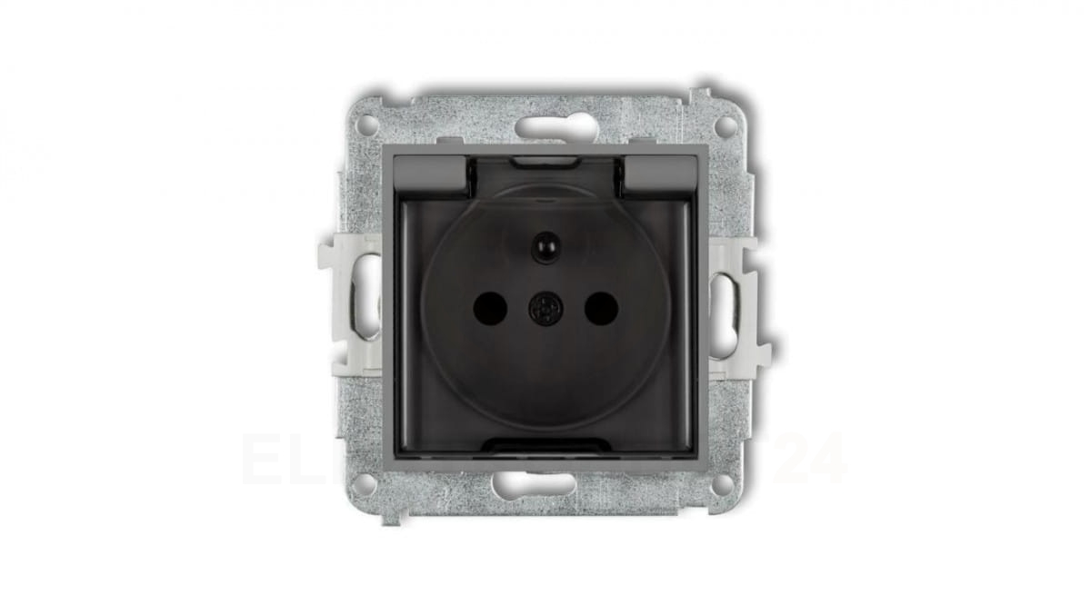 ICON Mechanizm gniazda bryzgoszczelnego z uziemieniem 2P+Z (klapka dymna, przesłony torów prądowych) szary mat 27IGPB-1zdp