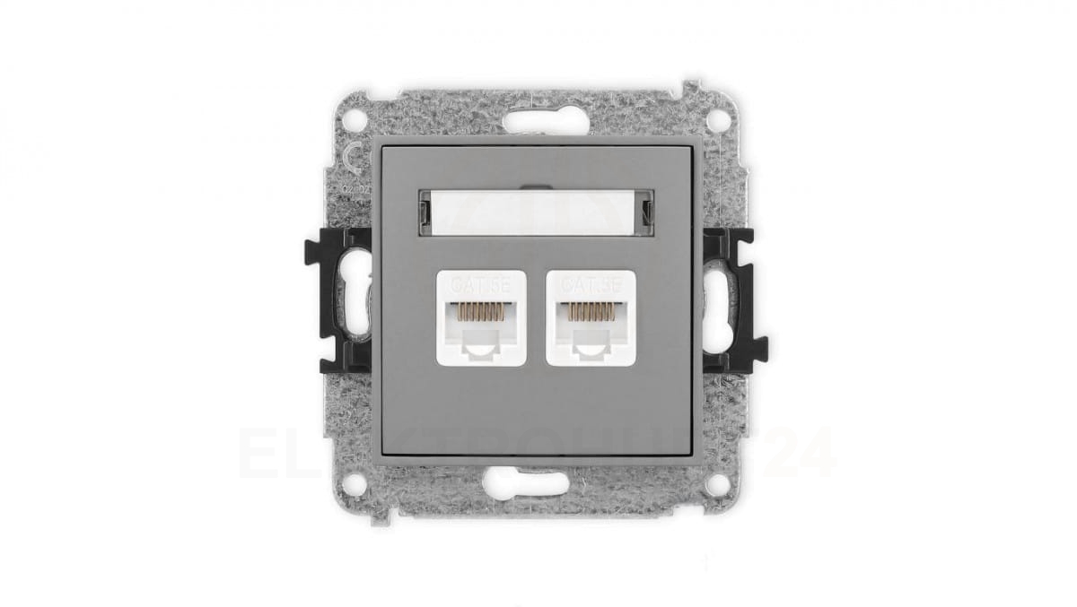 ICON Mechanizm gniazda komputerowego podwójnego 2xRJ45, kat. 5e, 8-stykowy szary mat 27IGK-2