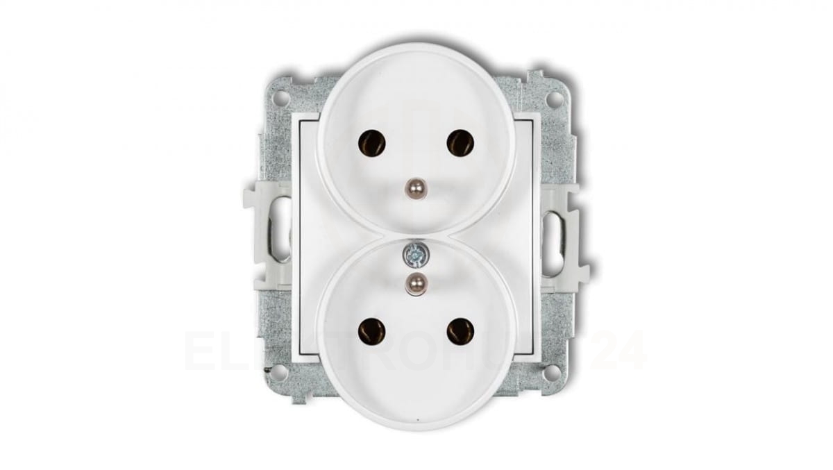 ICON Mechanizm gniazda podwójnego do ramki z uziemieniem 2x(2P+Z) (bez przesłon torów prądowych) biały mat 25IGPR-2z