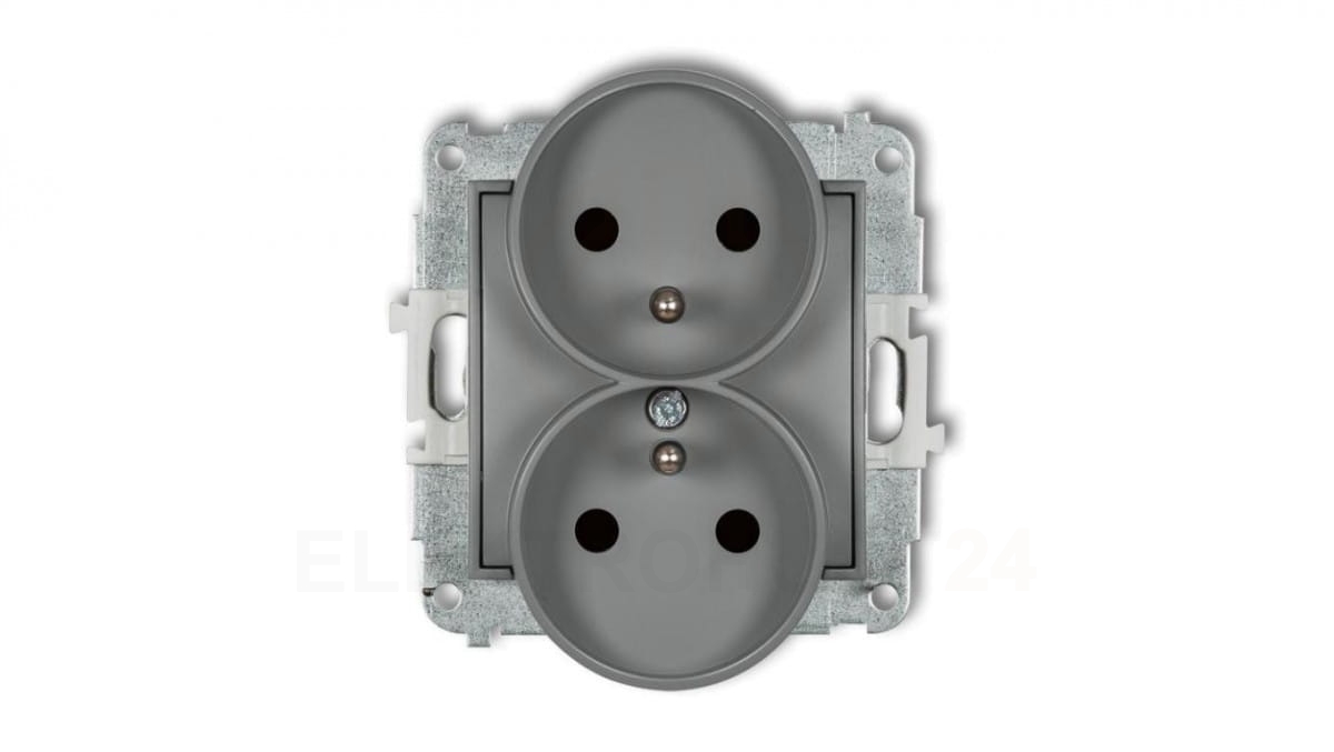 ICON Mechanizm gniazda podwójnego do ramki z uziemieniem 2x(2P+Z) (przesłony torów prądowych) szary mat 27IGPR-2zp