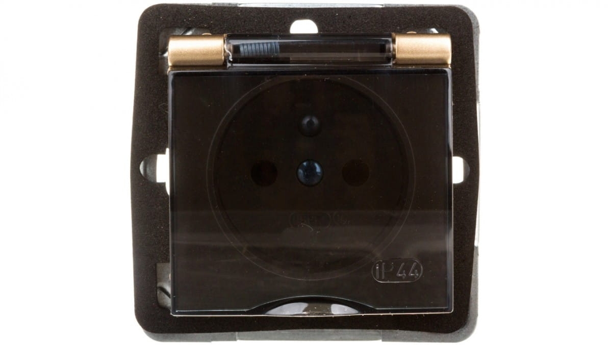 IMPRESJA Gniazdo bryzgoszczelne z/u IP44 klapka przezroczysta złoty metalik GPH-1YZ/m/28/d