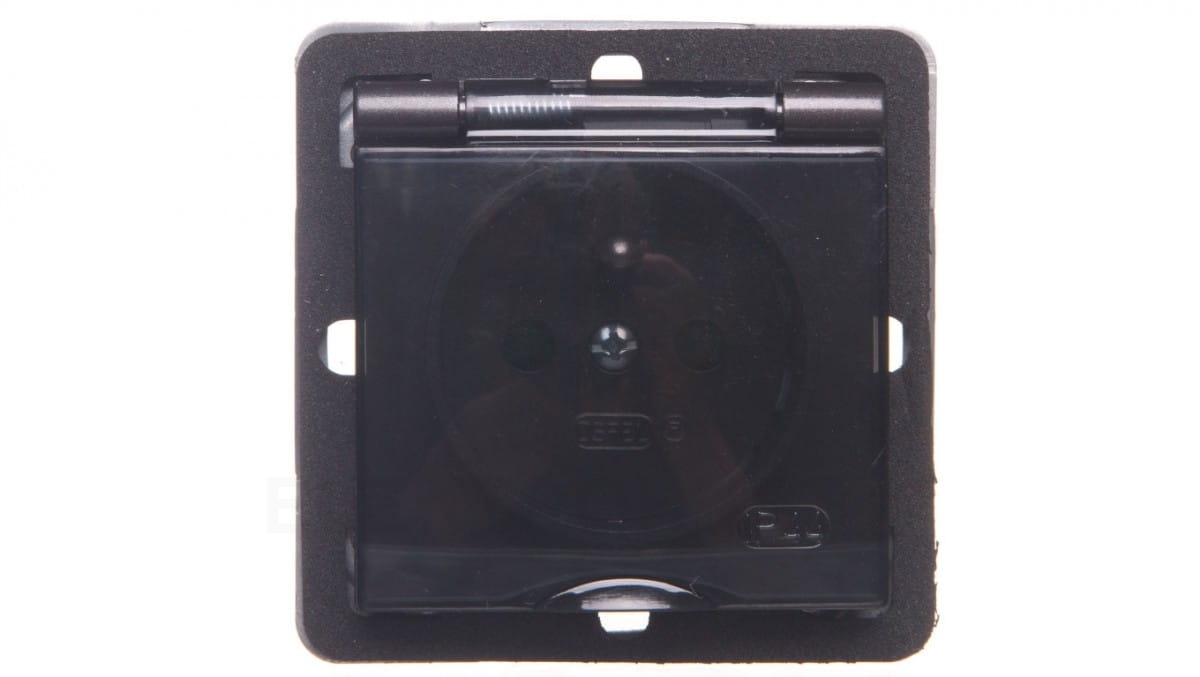 IMPRESJA Gniazdo bryzgoszczelne z/u IP44 z przesłonami klapka przezroczysta antracyt GPH-1YZP/m/50/d