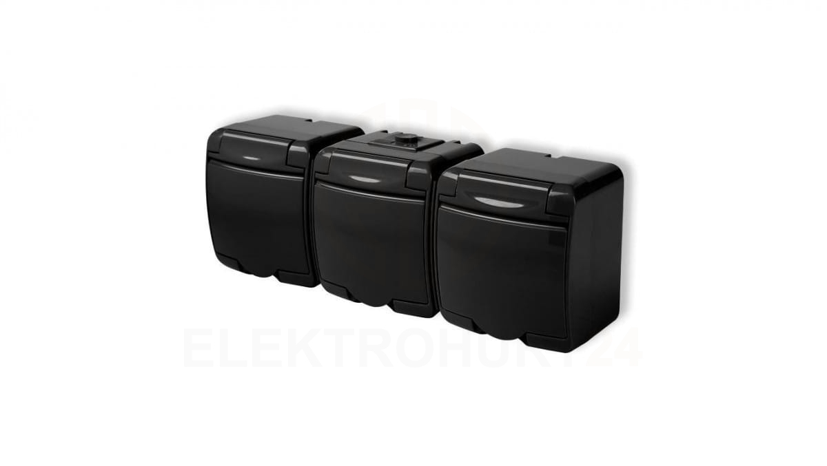 JUNIOR Gniazdo potrójne z uziemieniem 3x(2P+Z) (klapka czarna bez przesłon) czarny 12GHE-3
