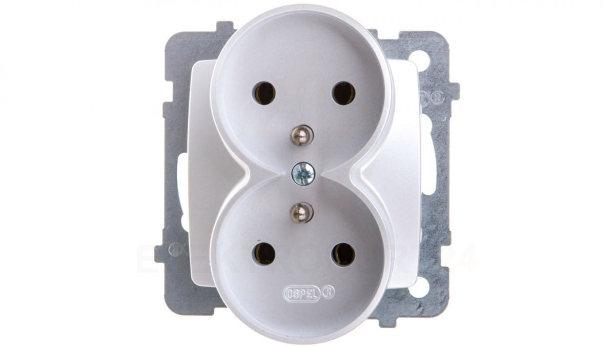 KARO Gniazdo podwójne z/u srebrny perłowy GP-2SRZ/m/43