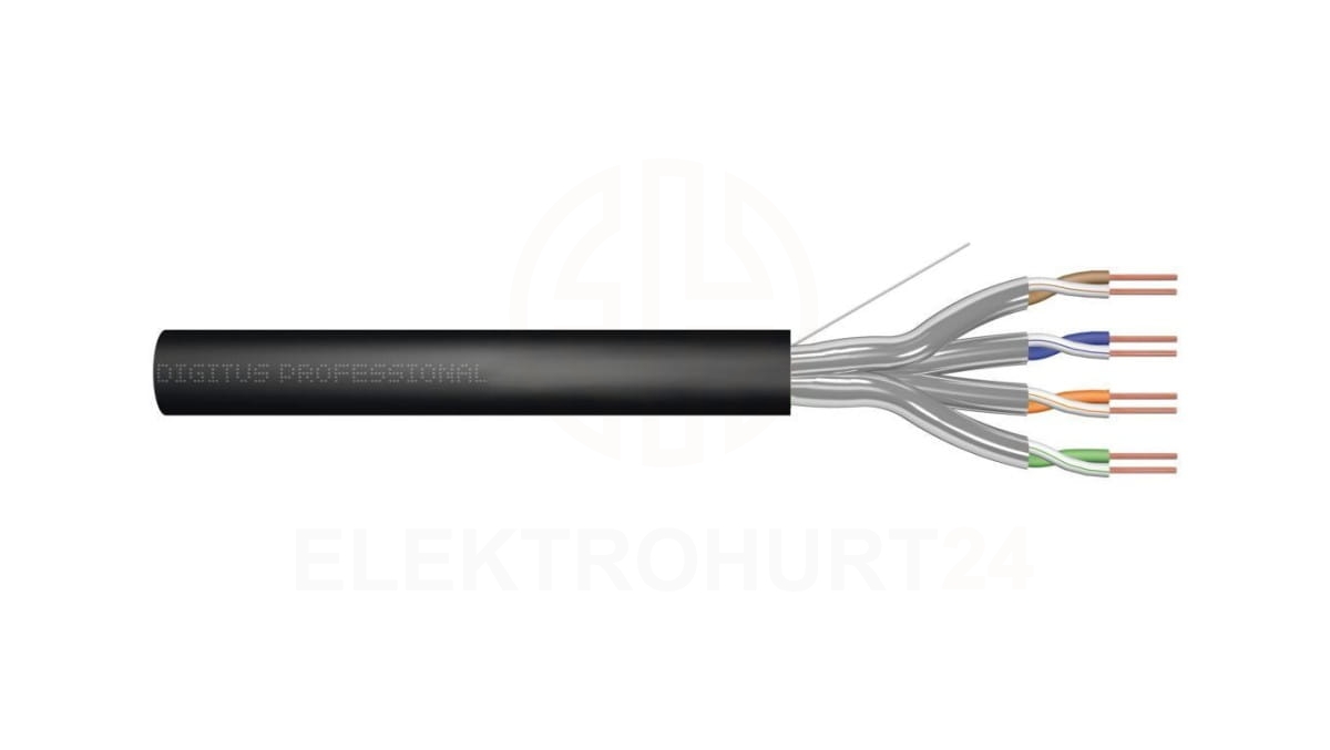 Kabel instalacyjny zewnętrzny żelowany DIGITUS kat.6A,U/FTP, Fca, AWG 23/1, PE, 500m, czarny, szpula DK-1621-A-VH-5-OD