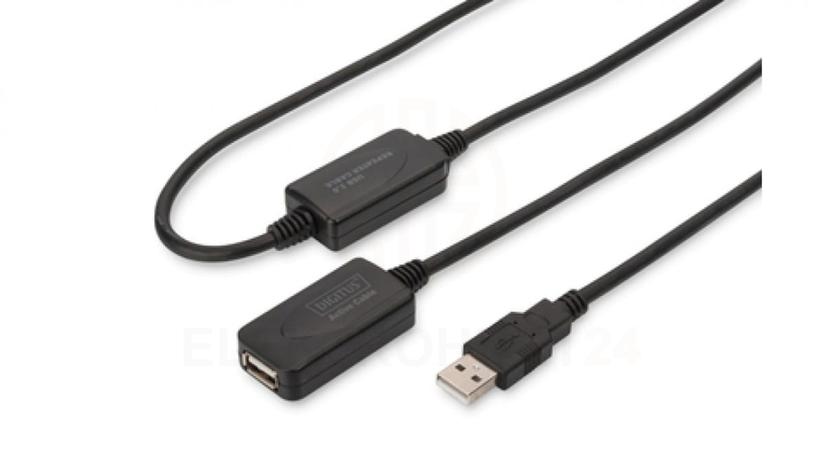 Kabel przedłużający USB 2.0 HighSpeed Typ USB A/USB A M/Ż aktywny czarny 20m DA-73102