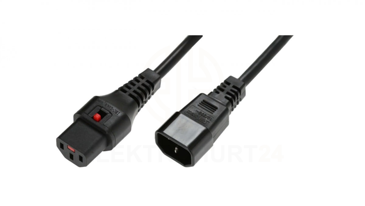 Kabel przedłużający zasilający z blokadą IEC LOCK 3x1mm2 C14/C13 prosty M/Ż 1m czarny IEC-PC1024