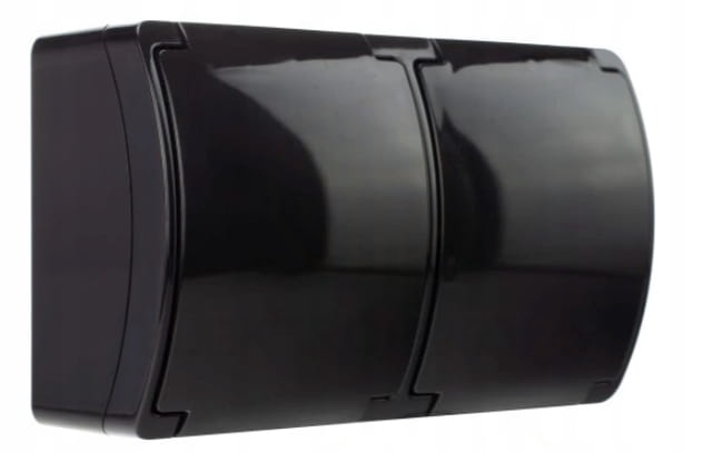Koala gniazdo podwójne N/T z klapką IP44 czarne