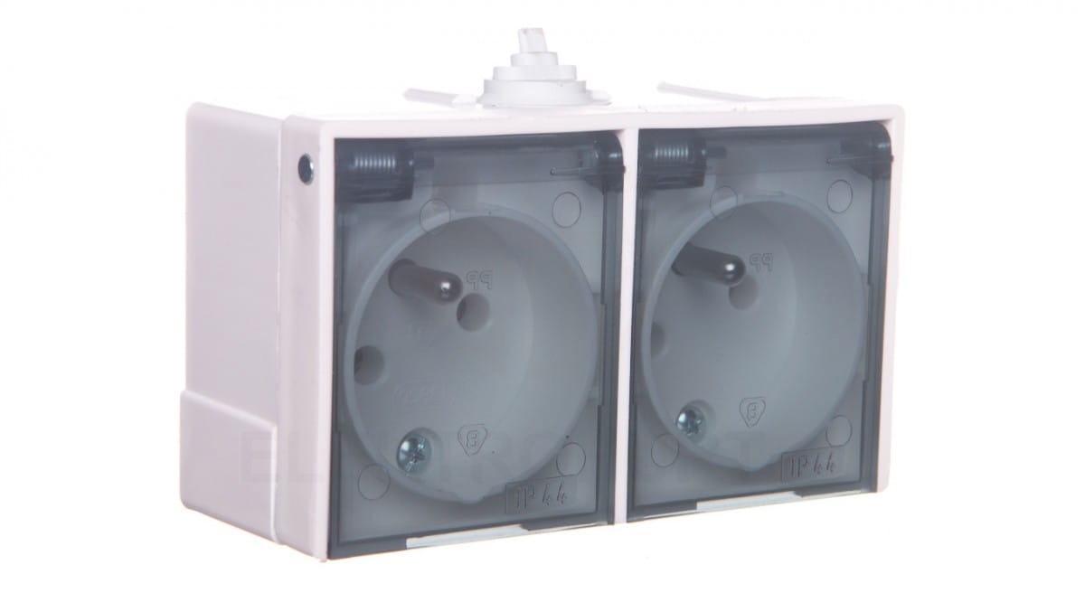 LAMBDA Gniazdo hermetyczne podwójne z/u IP44 klapka dymna biała GNH-2LZ/00/d