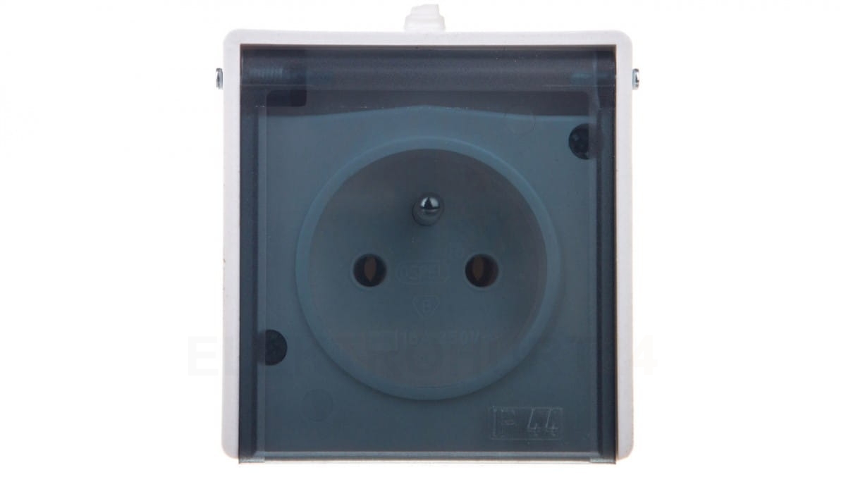 LAMBDA Gniazdo hermetyczne pojedyncze z/u IP44 klapka dymna białe GNH-1LZ/00/d
