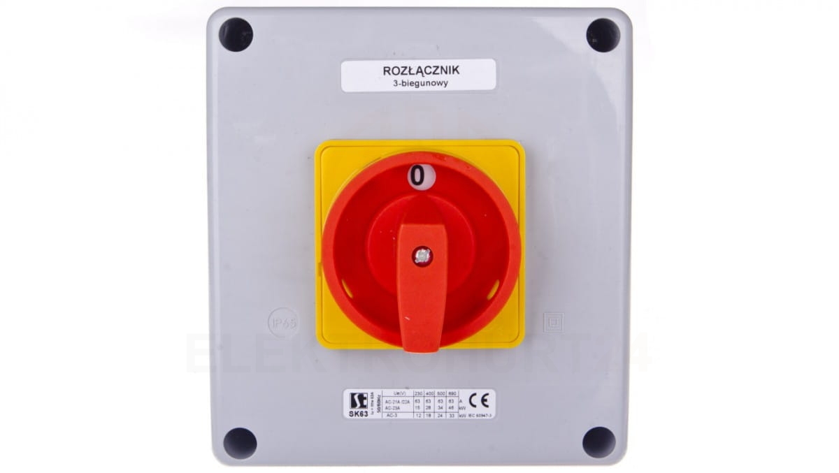Łącznik krzywkowy 0-1 63A 3P w obudowie żółto-czerwony SK63-2.8211OB16ZC