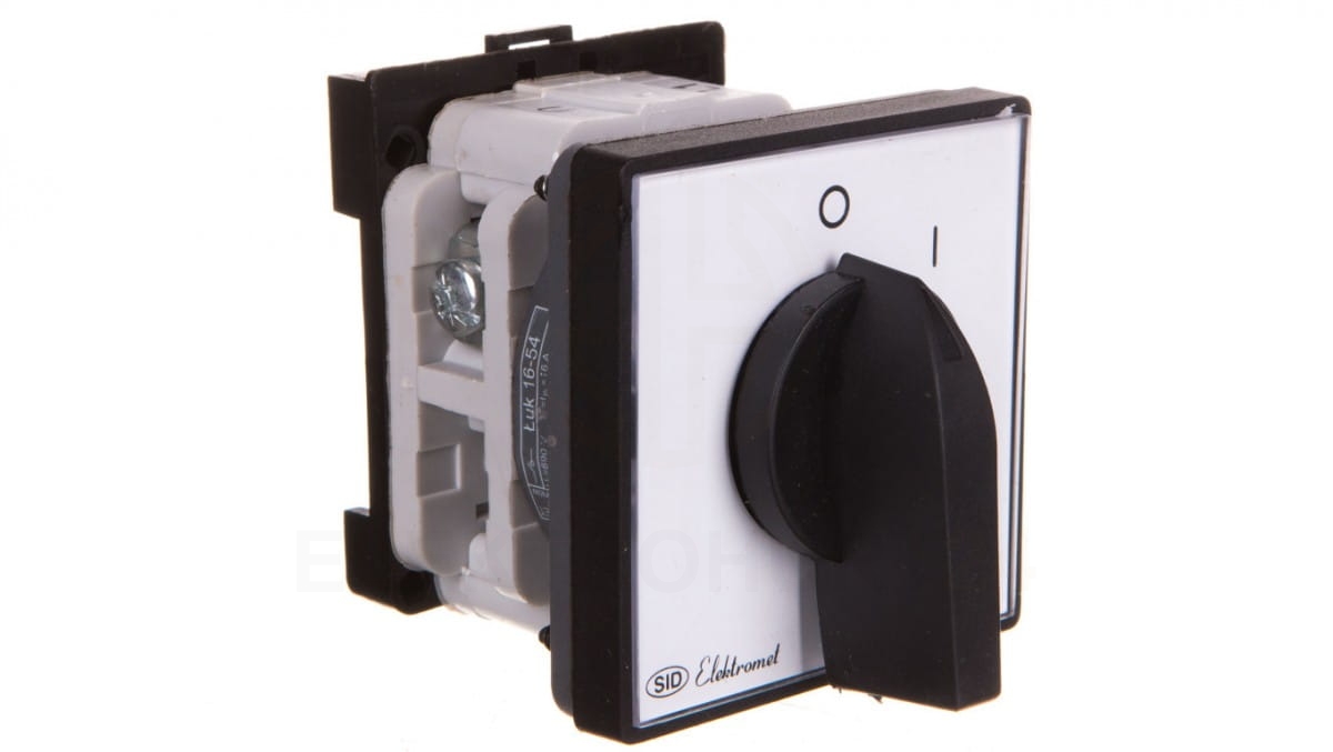 Łącznik krzywkowy 0-1 włącz-wyłącz 1P 16A z płytką przednią na szynę IP65 TH ŁUK 16-54 921646