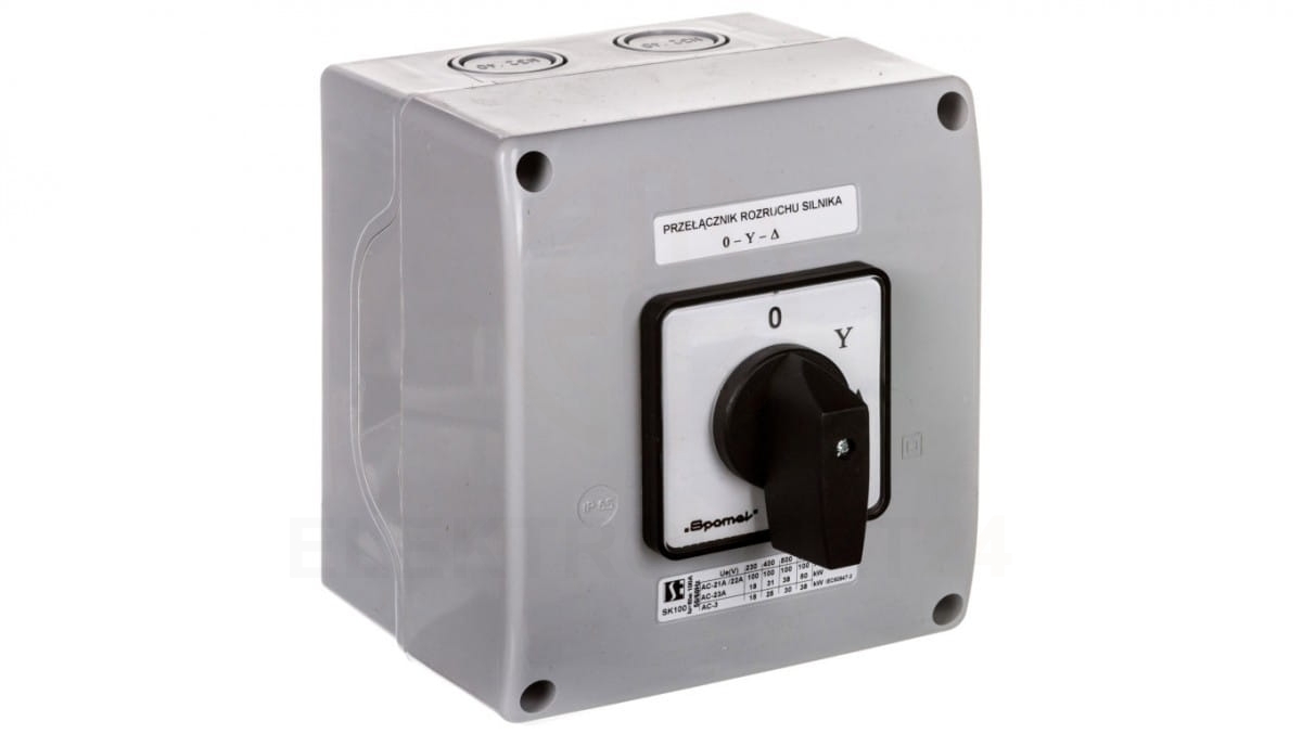 Łącznik krzywkowy 0-gwiazda-trójkąt 100A w obudowie pokrętło czarne SK100-4.831OB18