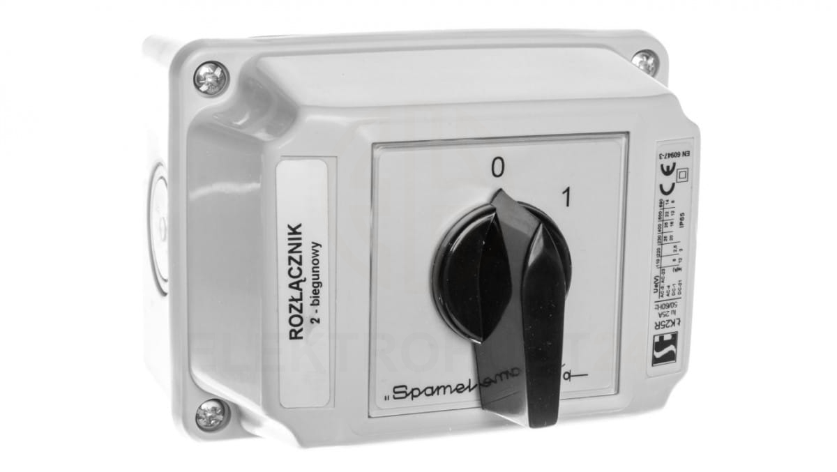Łącznik krzywkowy 25A 0-1 (2 - biegunowy) w obudowie OB2 ŁK25R-1.828OB2
