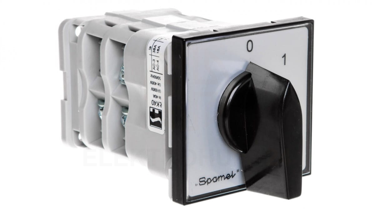 Łącznik krzywkowy 40A, Łącznik obwodów 0-1-2-3, mocowany do pulpitu czoło szare pokrętło czarne ŁK40-2.8445P03