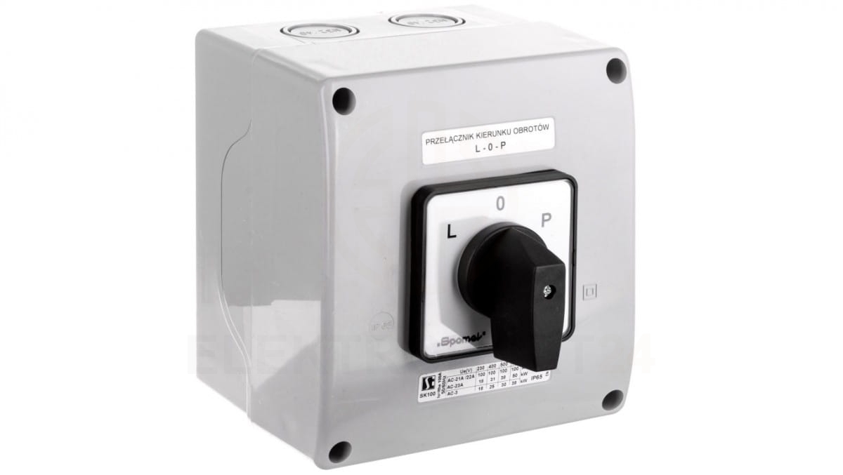 Łącznik krzywkowy L-O-P 100A w obudowie pokrętło czarne SK100-3.8368OB18