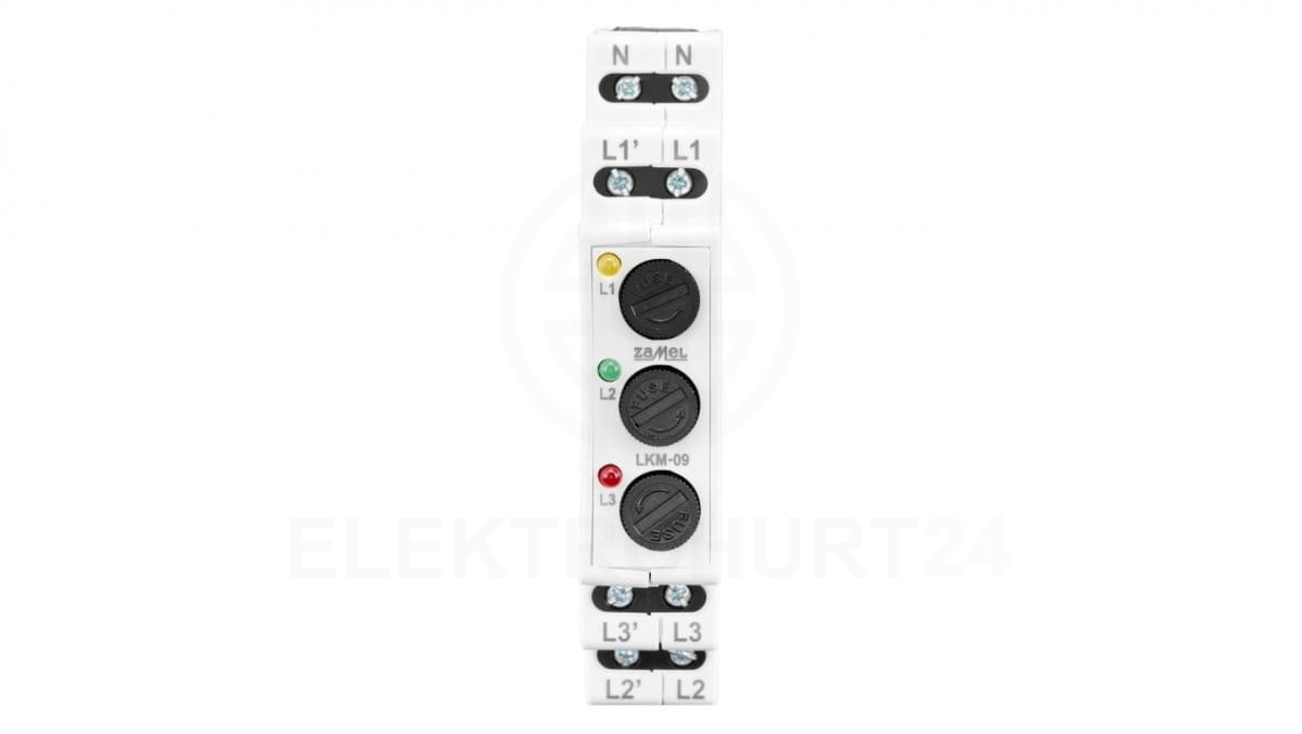 Lampka modułowa 3-fazowa z zabezpieczeniami żółta/zielona/czerwona) LKM-09-40