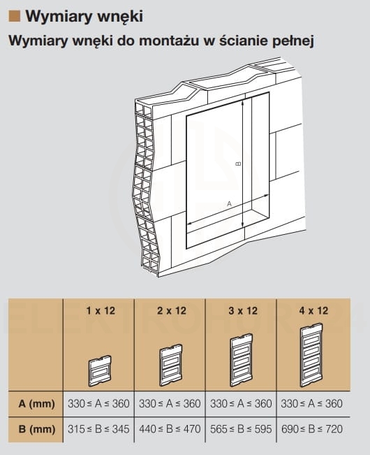 - Wymiar wnęki (szer. x wys.): 330-360mm × 315-345mm