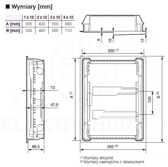 - Ilość modułów 17,5 w rzędzie: 12+1