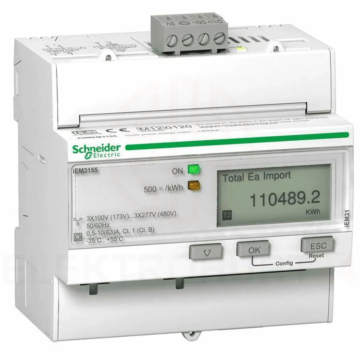 Licznik energii elektrycznej 1/3-fazowy 63A 100-277/173-480V kl.1/B Modbus MID taryfowy cyfrowy modułowy iEM3155 A9MEM3155
