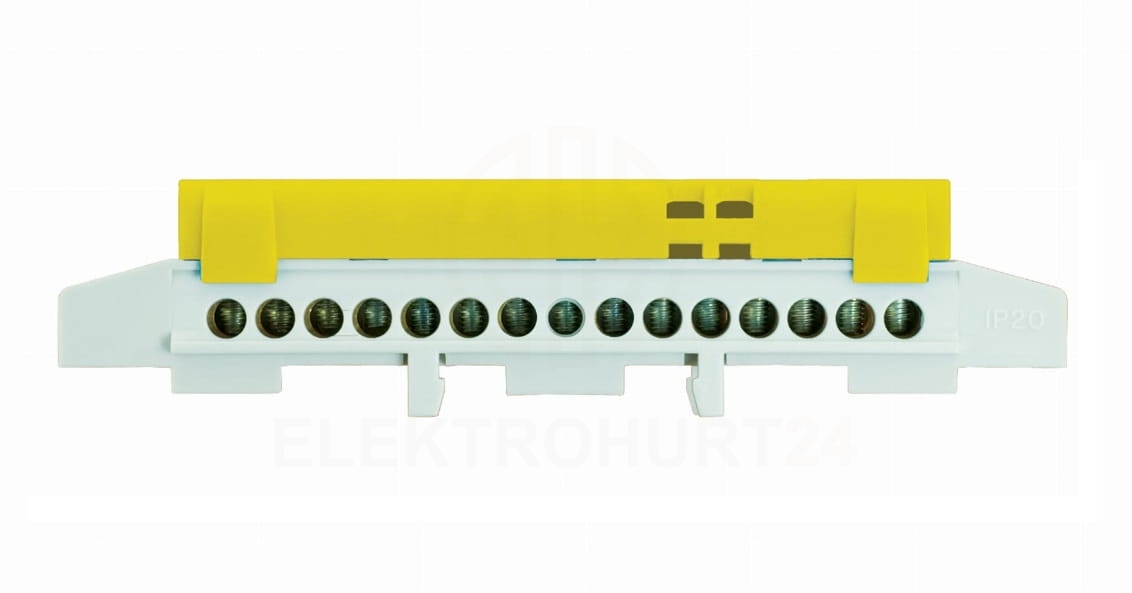 Listwa zaciskowa na szynę 15-torowa żółta TH35 IP2