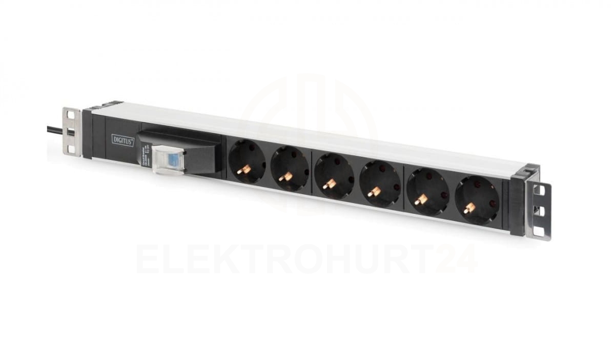 Listwa zasilająca PDU 19 Rack 6x schuko 2m 1x wtyk unischuko 16A wyłącznik nadprądowy DN-95417